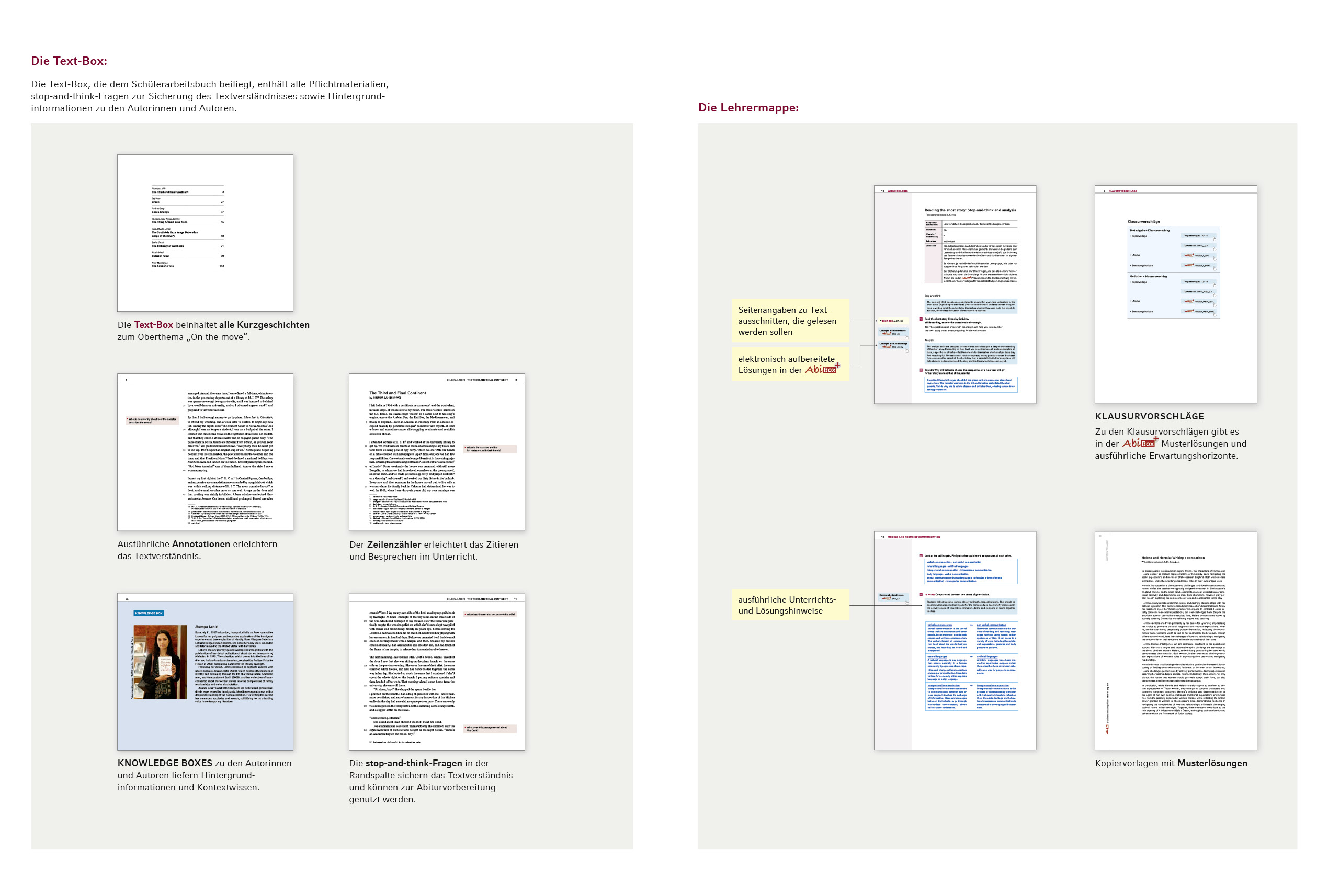 Die Inhalte sind identisch mit der Abi-Box Englisch „On the move: Short Stories“ der Abiturjahrgänge 2025 und 2026.